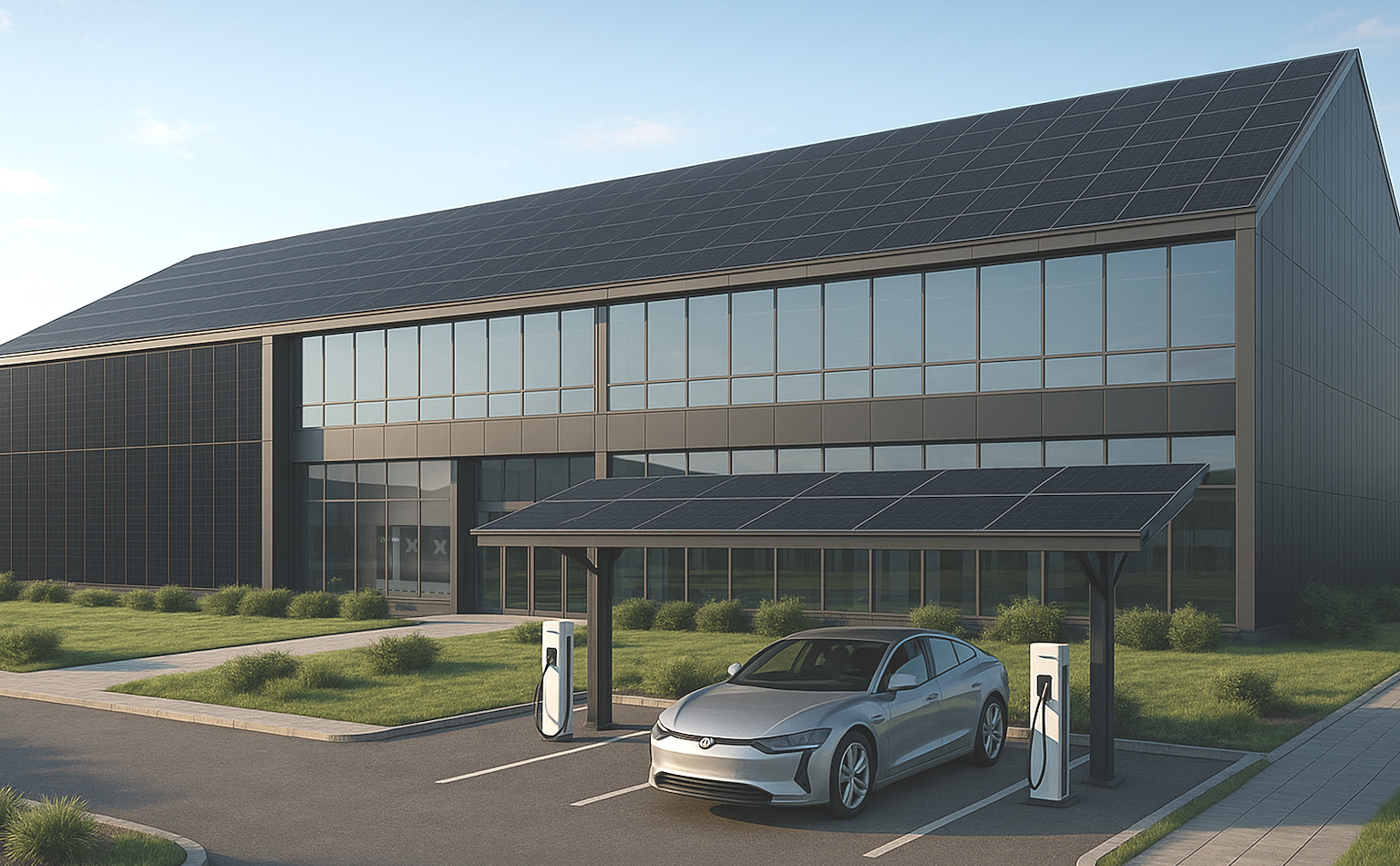 Ob Firmenflotte oder Kundenparkplatz: Kombinieren Sie PV & E-Mobilität – nachhaltig & steuerlich attraktiv.