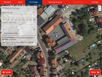 - Auswahl der Dachfläche mit Google Maps Ansicht