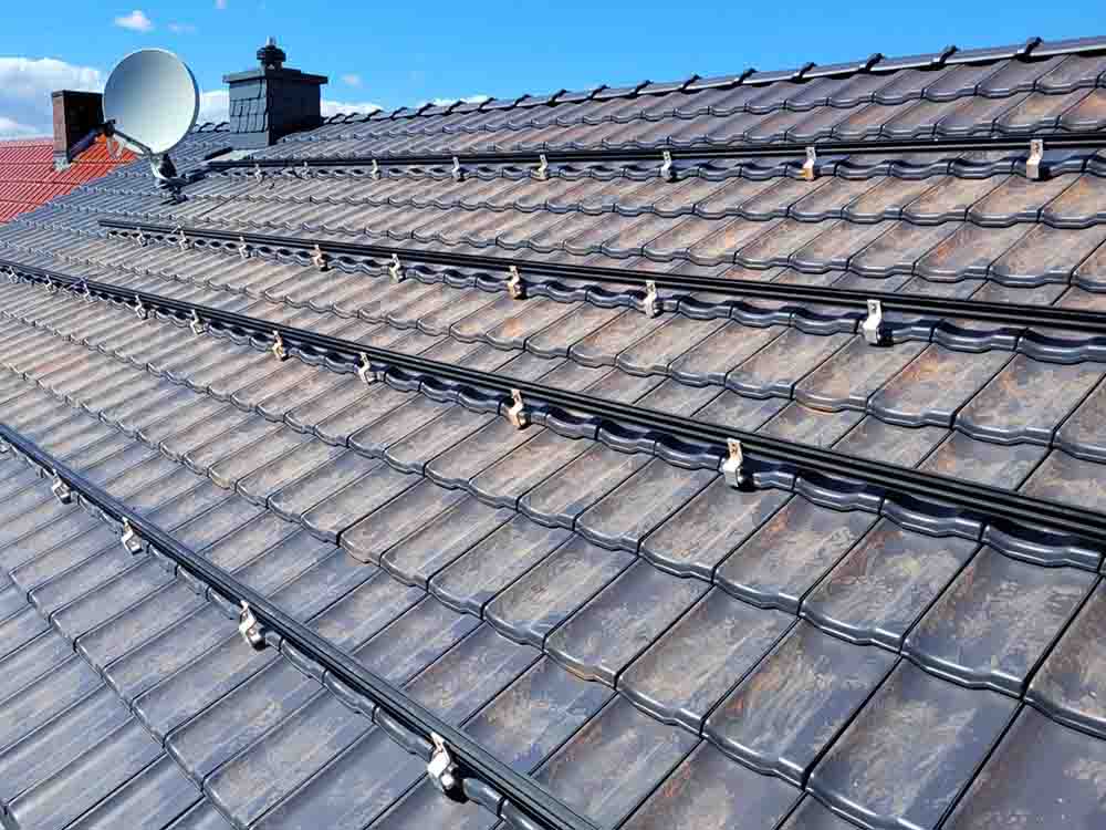 Außerdem ist die Installation ohne Dachdurchdringung ein wichtiger Aspekt. Dies geschieht nicht nur aus ästhetischen Gründen, sondern auch zur Erhaltung der Dachstruktur. Wir verwenden schwarze Schienen, die perfekt mit unseren hochleistungsfähigen Solarmodulen harmonieren und dem Gesamtbild eine ansprechende Ästhetik verleihen.